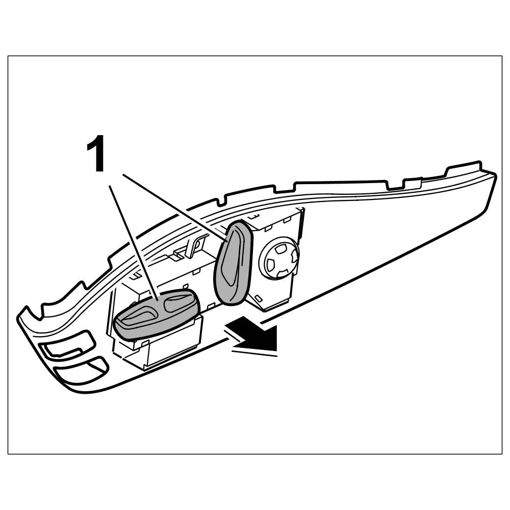 1. Carefully unclip the two control buttons -1- using a plastic wedge.