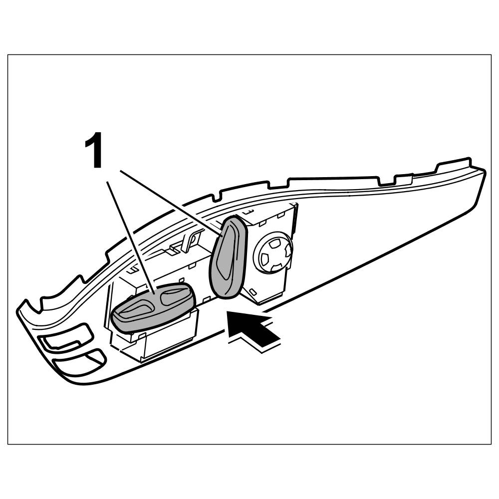 2. Position the two control buttons -1- precisely and carefully press down onto the seat adjustment switch until they are felt to engage.