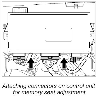 1. Attach the three connectors on the control unit for memory seat adjustment until they are felt to engage.
