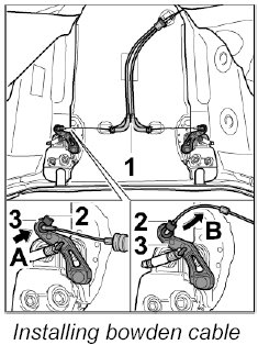 2. Engage bowden cable at the left and right on the upper part of the lock.