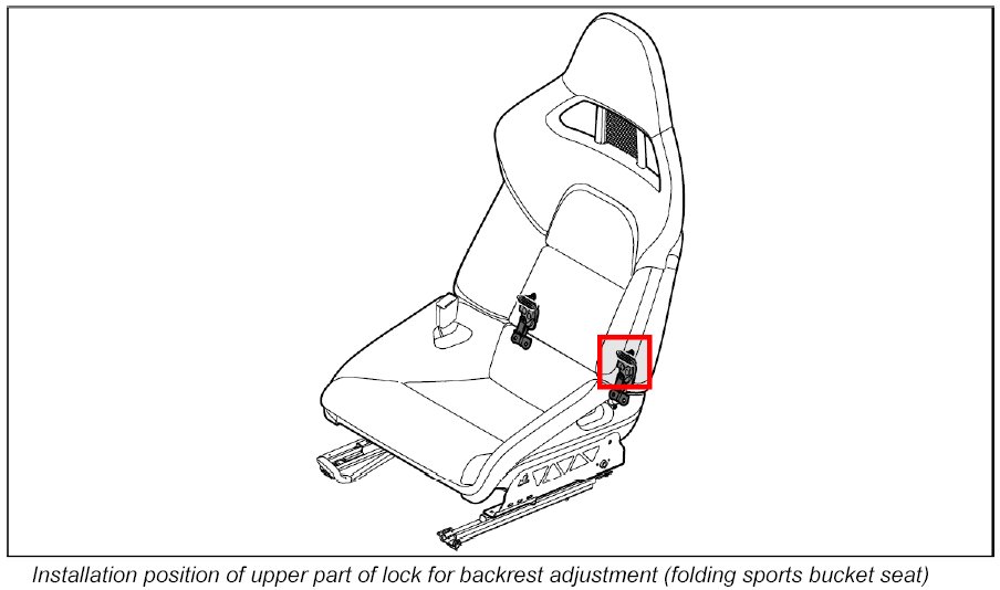 1.3. Adjust upper part of lock. Refer to Removing and installing lock for backrest adjustment (folding sports bucket seat)