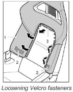1. Pull off the cover -1- at the Velcro fasteners -2- and -3- ( -arrows- ).