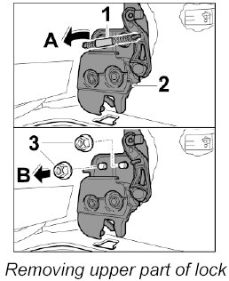 5.3. Remove upper part of lock -2- ( -arrow B- ).