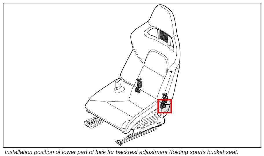 1.3. Adjust lower part of lock. Refer to Removing and installing lock for backrest adjustment (folding sports bucket seat)