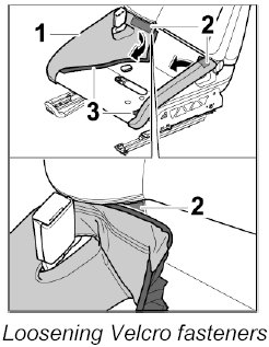7. Press on Velcro fasteners -2- and -3- ( -arrows- ).
