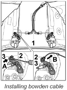 4. Disengage the bowden cable at the upper part of the lock