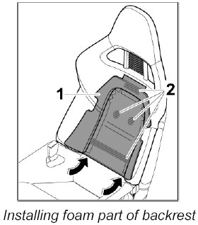 2.1. Install front and rear part of seat cushion. Refer to Removing and installing seat cover (folding sports bucket seat)