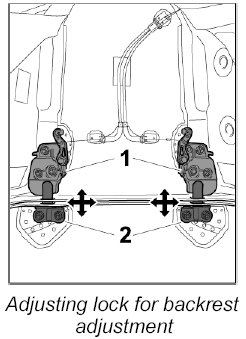 1. Lock the backrest so that the upper part of the lock -1- engages in the lower part of the lock -2- without strain.