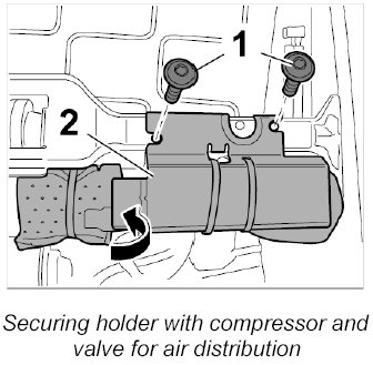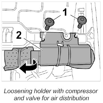 3.2. Move holder -2- with connected motor and control valve for air cushion to one side -arrow-.
