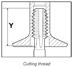 Cut thread into the chassis bushing using a cutting tool D up to dimension Y. Clean the thread on the chassis bushing (blow it out).