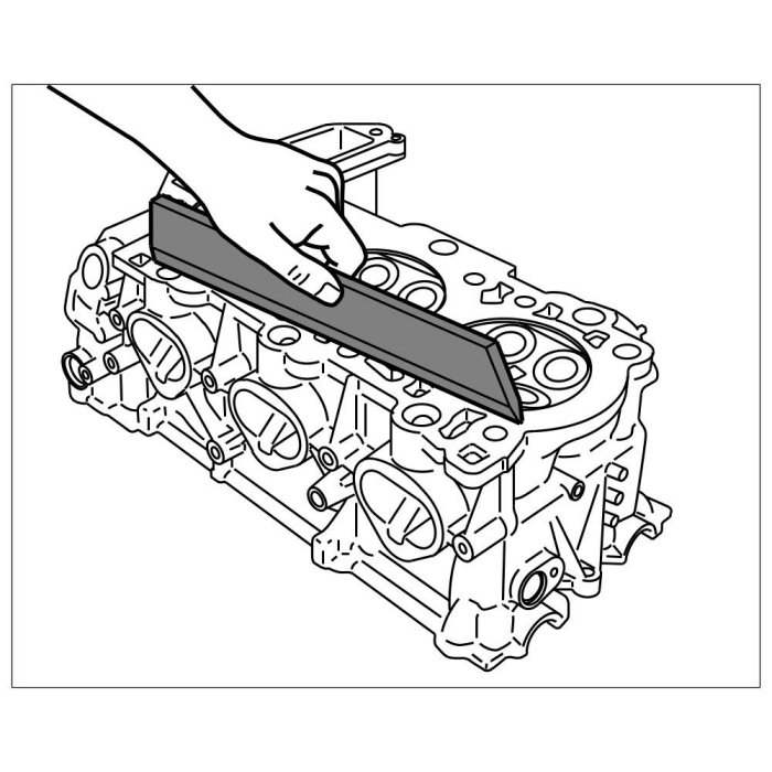 3. Check combustion chamber sealing face of the cylinder head for distortion (flatness) using a straight-edge and feeler gauge.