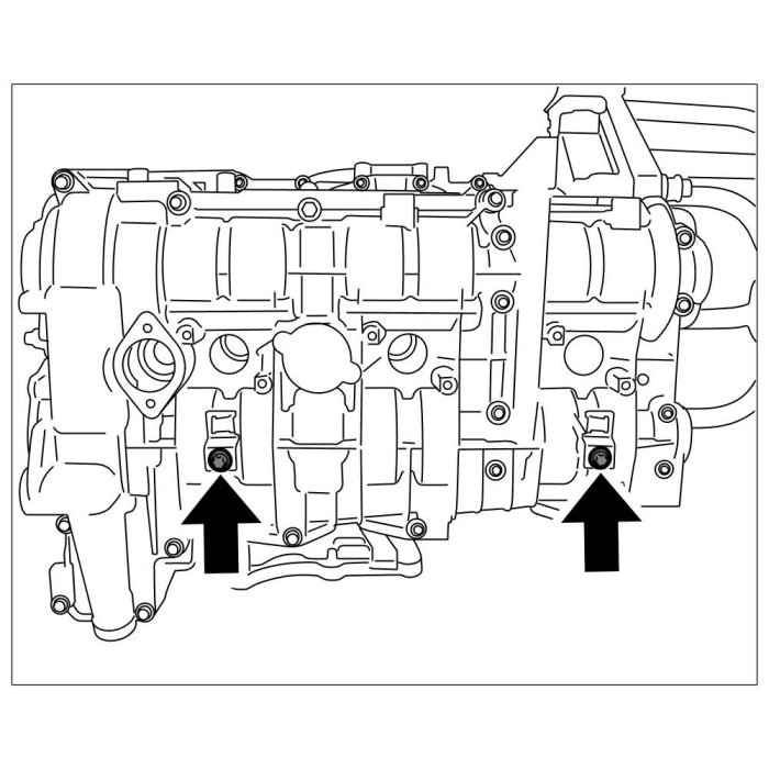 2. Drain engine oil. Unscrew the oil drain plug (hexagon socket a/f 8) -> 170155 Engine oil and oil filter change Removal and Replacement.