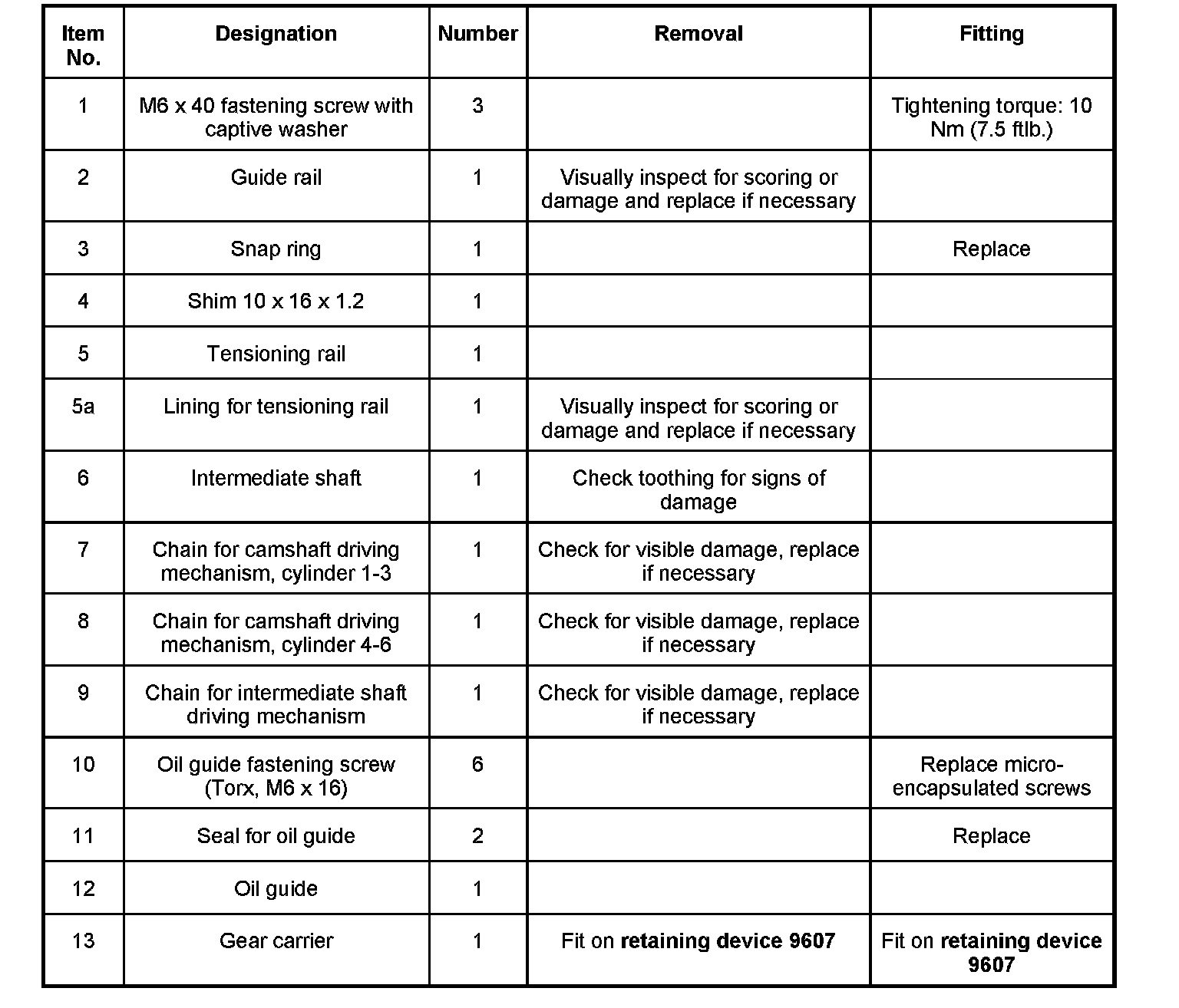 1. Fit oil guide with new seals. Tighten six new M6 x 16 (micro-encapsulated) Torx screws. --> Tightening torque: 10 Nm (7.5 ftlb.)