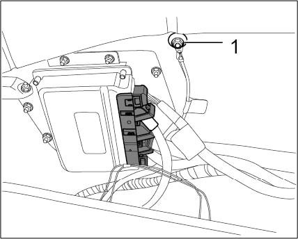 33. Unscrew nut (M8) -1- and remove ground strap -2- (right side of vehicle).
