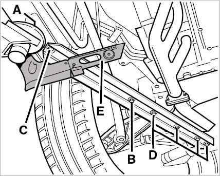23. Unscrew collar nuts (M10) -D- , unscrew screw (M10 x 45) -C- and remove diagonal braces -B-.