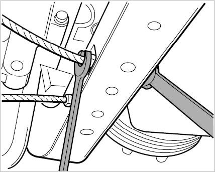 28. Unscrew nuts (M8) on restraining-cable holder. (The cable must be countered with a suitable wrench and must not be twisted!)