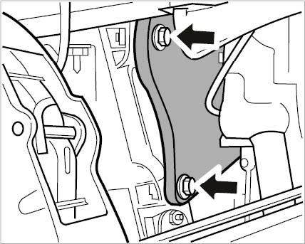 25. Unscrew screws (M10 x 70) -arrows- and remove V-brace.