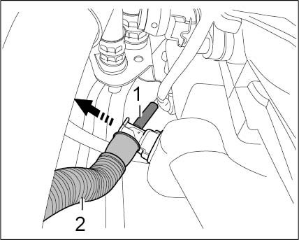 5. Release and pull off connector -1- on scavenging-air fan -2-.
