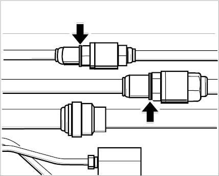 40. Unclip safety clips -arrow- at the servo-line couplings.