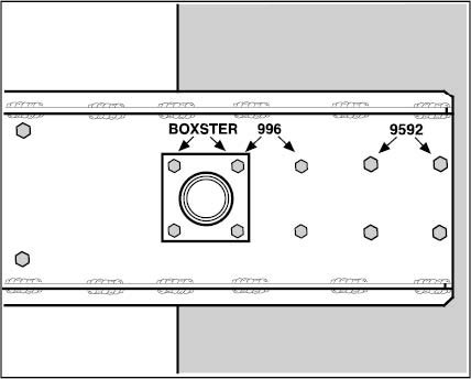 48.1. Screw special tool mounting peg 9163/2 to the support plate in the marked position -Boxster- using four M8x25 hexagon bolts.