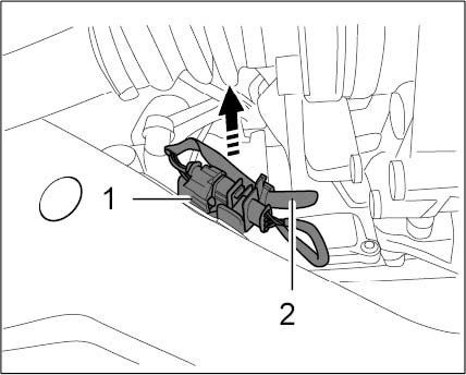 21. Insert connectors for oxygen sensors -1- and clip into the brackets. Clip wires -2- into the brackets.