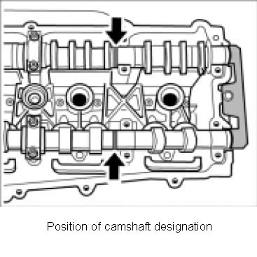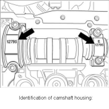^ Do not interchange the thrust bearings of the inlet and exhaust camshafts during assembly; observe identification markings.