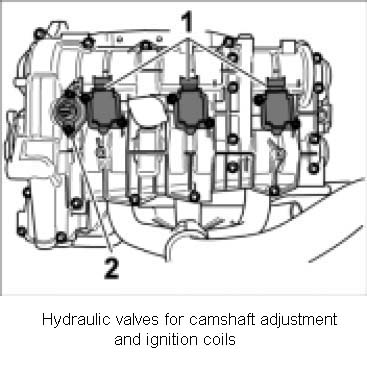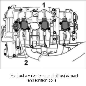 4. Remove solenoid hydraulic valve -1- (for camshaft timing).