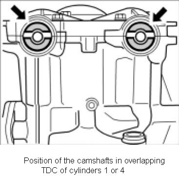 24. Oil the bearing surfaces of the camshafts with new engine oil.