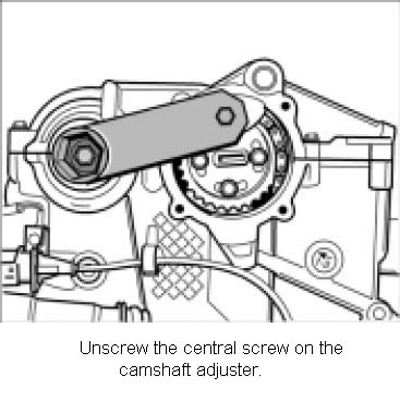 ^ Before disassembling the cylinder head cover, it is essential to unscrew the central screw on the camshaft adjustment device.
