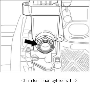 - Chain tensioner on cylinder head, cylinder bank 4 - 6, no identification.