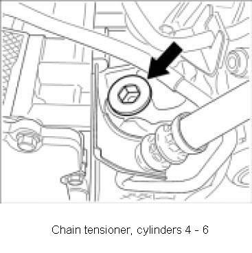 8. Remove the chain tensioner for cylinders 4 - 6.