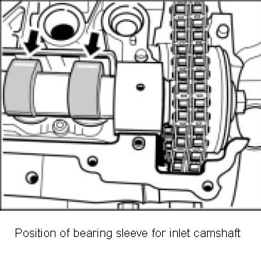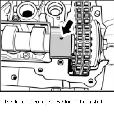 ^ Make sure that the bearing sleeve on the inlet camshaft is positioned correctly.