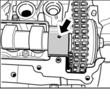 13. Remove the camshafts. Remove exhaust camshaft, lift timing chain off the camshaft adjuster of the inlet camshaft and remove the camshaft. Lay the timing chain in the chain housing in the cylinder head.