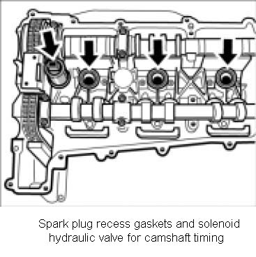1. Insert solenoid hydraulic valves and new gaskets for the spark-plug recesses. Fit new O-rings into the solenoid hydraulic valves and insert into the bores in the cylinder head (if necessary replace oil strainer). Grease O-rings with Optimol MP3 hydraulic valve for camshaft timing'.