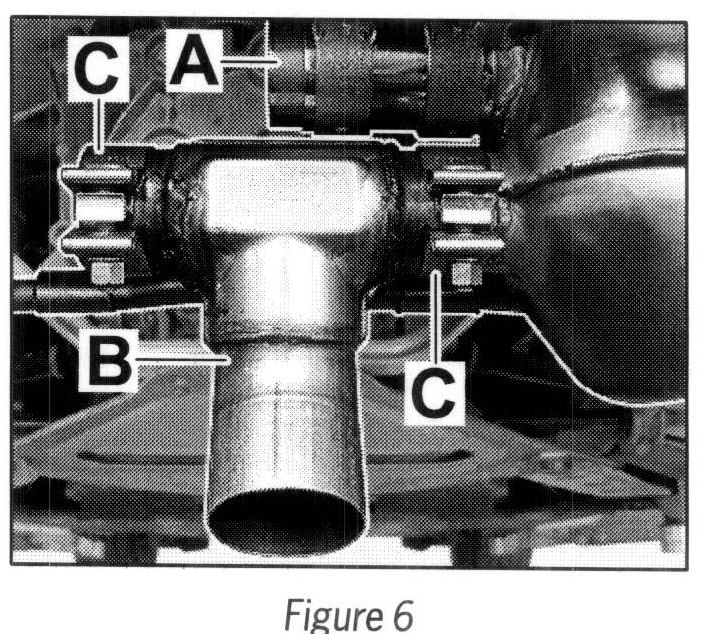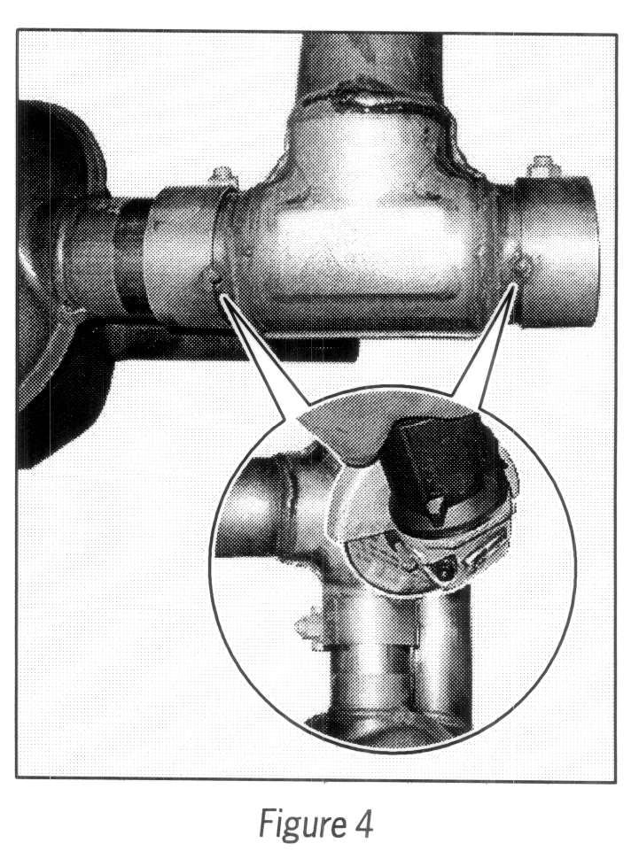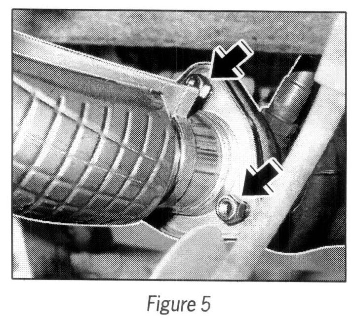 1.5 Open spot welds on clamps on the tailpipe using a chisel or parting grinder --> Figure 4. Remove clamps on tailpipe.
