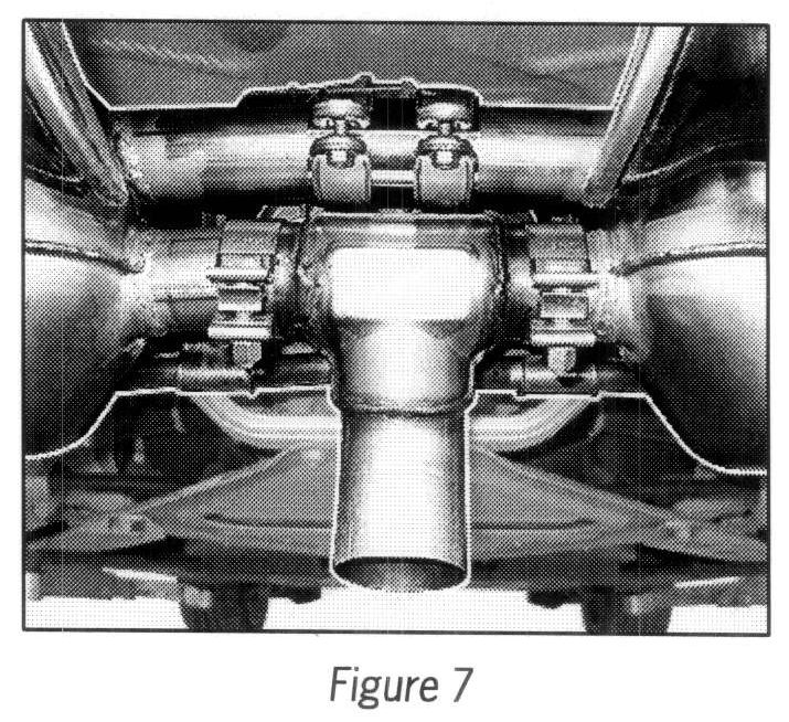 2.5 Fit tailpipe and clamp on the left rear silencer and align the two rear mufflers --> Figure 7. Tighten M8 hexagon nuts on the flange between the two rear mufflers and the catalytic converter.