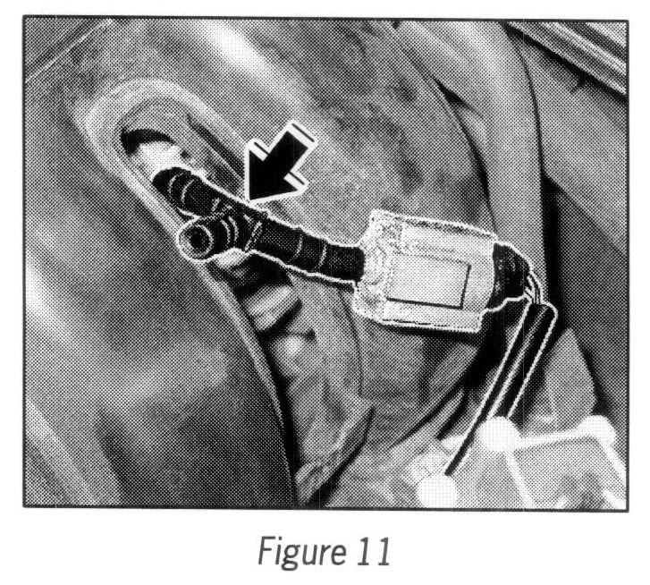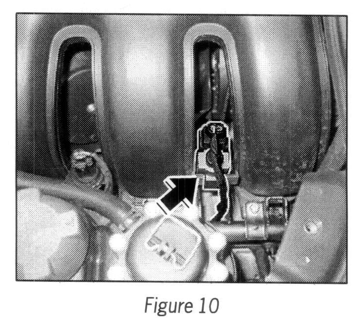 3.1 Unclip standard changeover valve, which is clipped in on the intake distributor between cylinders 1 and 2 --> Figure 10 -arrow-.
