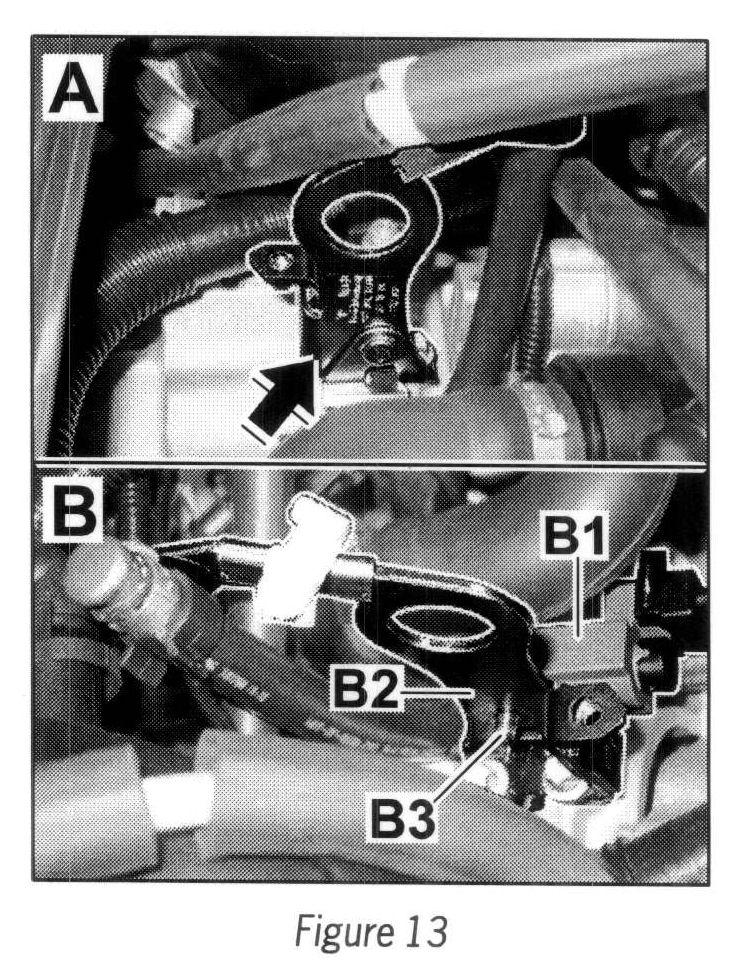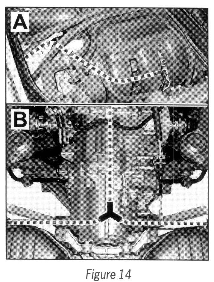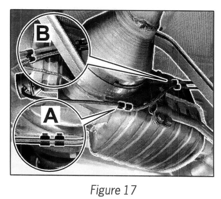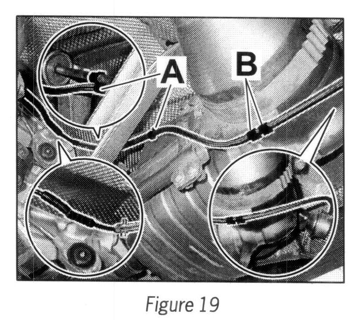 4.2.7 Clip steel-encased lines into clip on strut (2 ea. --> Figure 19-A-) and rear muffler holder (2 ea. --> Figure 19 -B-).