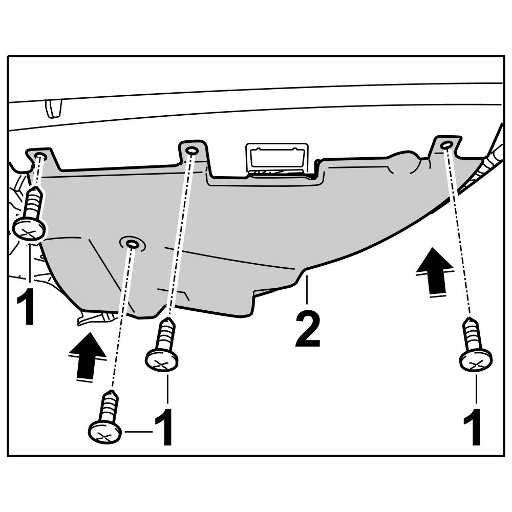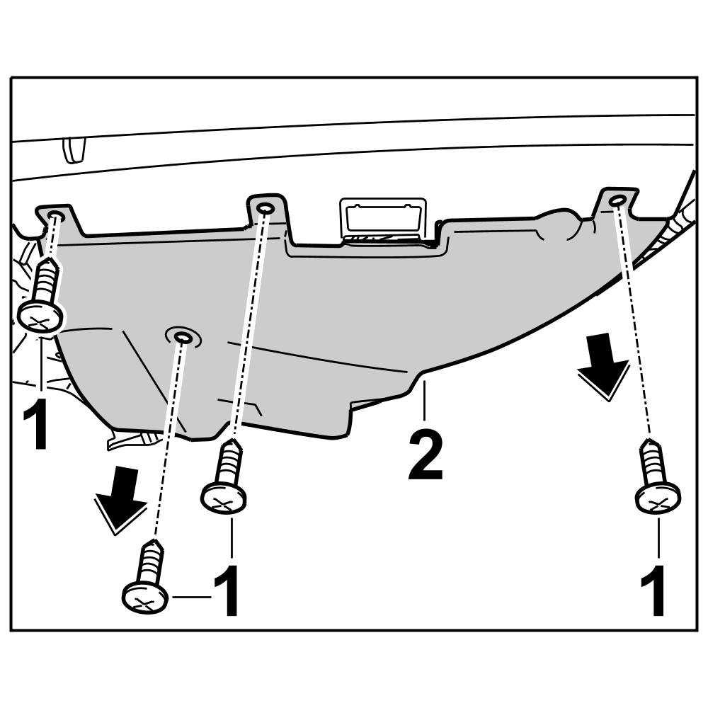 1. Position cover -2- from underneath -arrows- and secure with the fastening screws -1-.