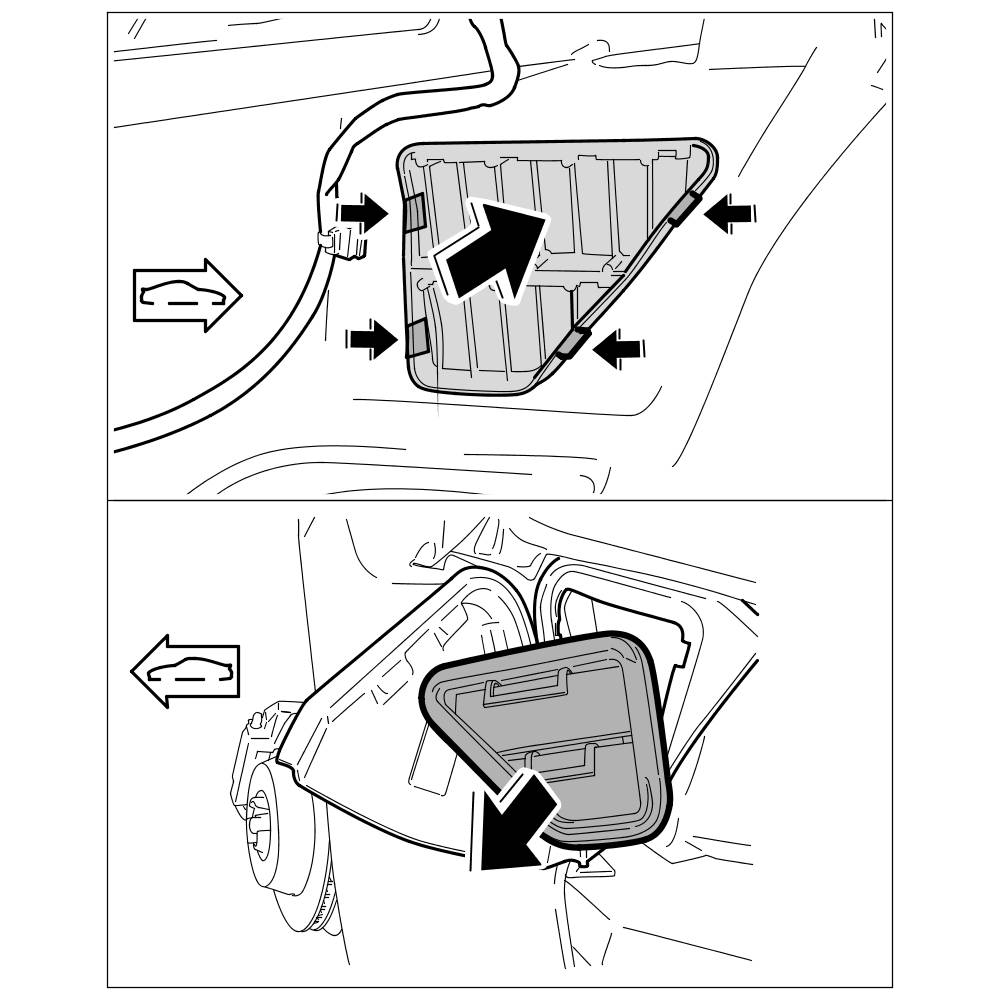 2. Unclip the ventilation cover on the body from the inside (luggage compartment area) and take off toward the outside.
