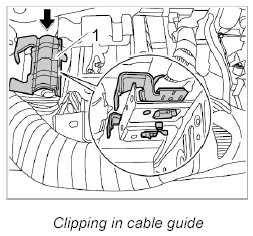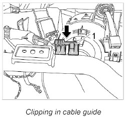 5. Clip in cable guide -1- at the right of the dashboard support.