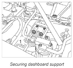 9. Unscrew right fastening screw -1- and pull dashboard support -3- out slightly.
