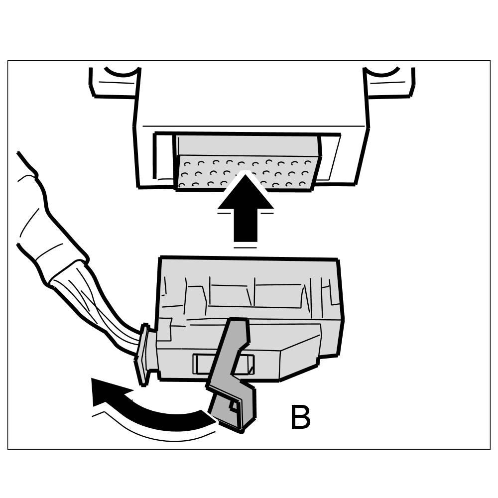 1. Plug in electric connector on the control unit and lock connector -B-.