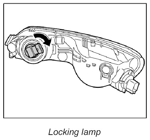 1. Insert new lamp in headlight and turn lamp in left fog light to the right or turn lamp in right fog light to the left (bayonet lock).