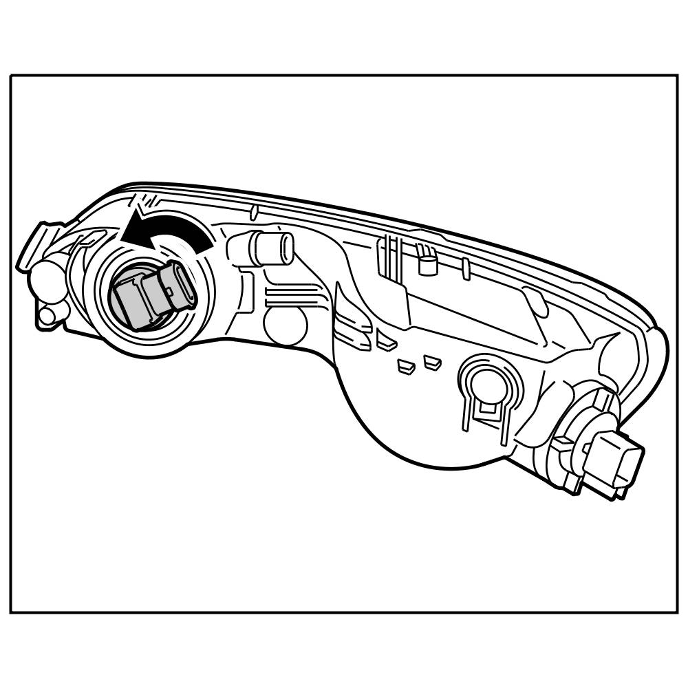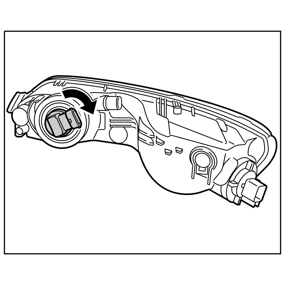 1. Insert new lamp in headlight and turn lamp in left fog light to the right or turn lamp in right fog light to the left (bayonet lock).