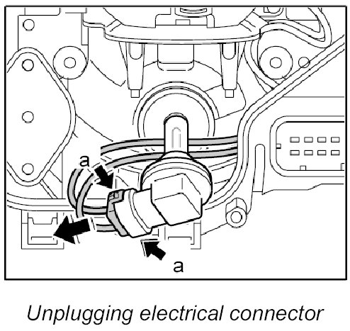 2. Unclip electric connector -a- and unplug.