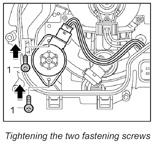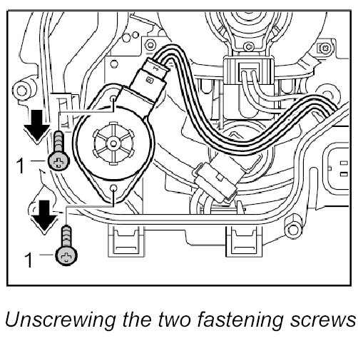 1. Unscrew the two fastening screws -1- for the servo motor.