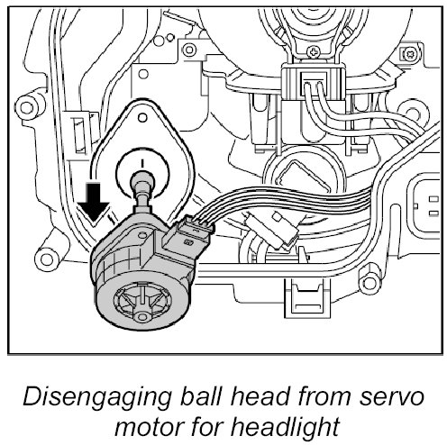 INFORMATION: After reinstallation or installation of a new servo motor for the headlight levelling system, the headlight must be calibrated.