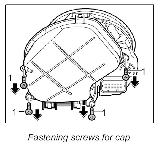 1. Unscrew four fastening screws -1- from the cap.
