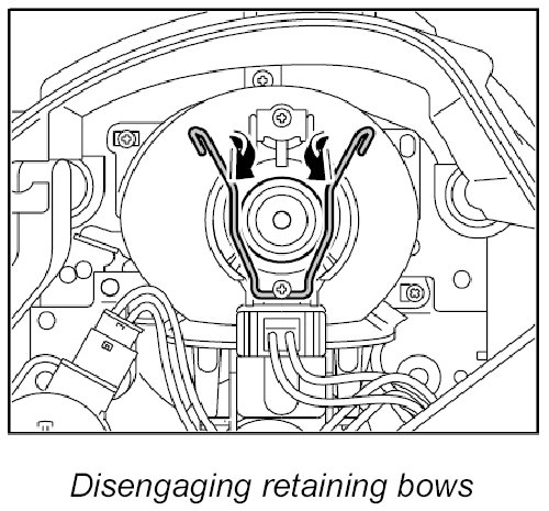 2. Disengage both retaining bows and pull out lamp.